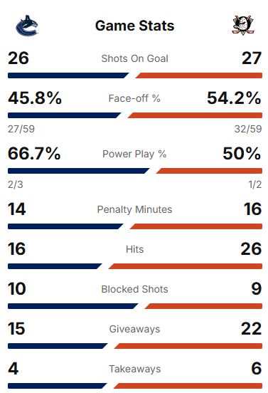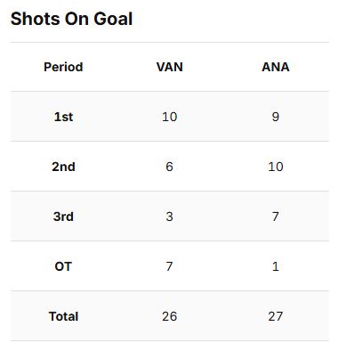 The #Canucks recorded 10 shots in the first period. They then record a total of 9 over the next 40 minutes.