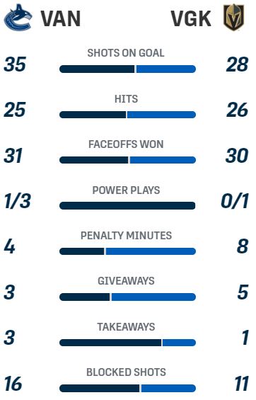 Nucks played a near perfect stinge game. Allowed few high danger chances, 2 in the 1st, 1 in the 2nd and 3 in the 3rd - EN bias. Low event Tough Taco hockey may not be the funnest style of game to watch, but winning more games down the stretch Taco Tough style is better.