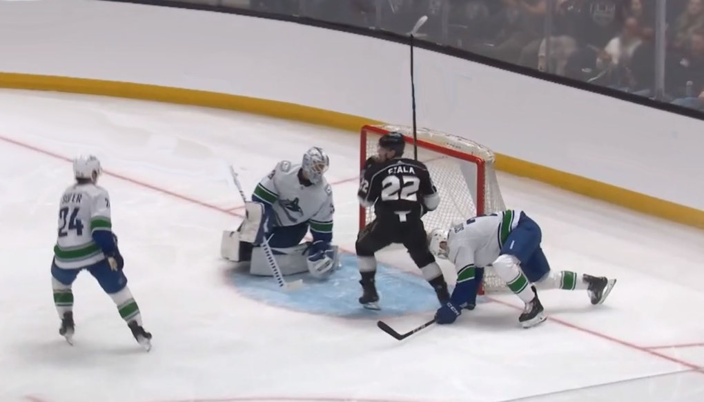 For a couple minutes, as the Nucks get permissive in their own zone and DeSmith can't make another save. 5-2 LA.